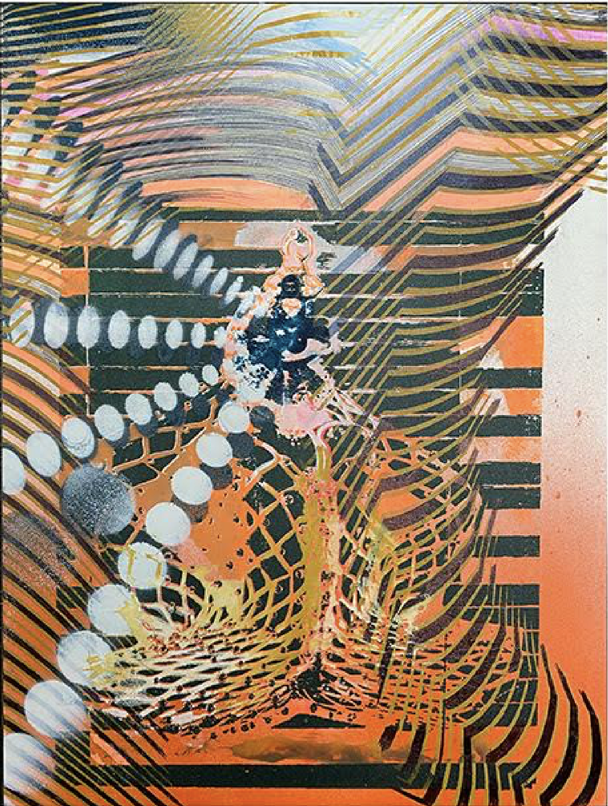 Acrylic, Ball point pen and spray paint on panel